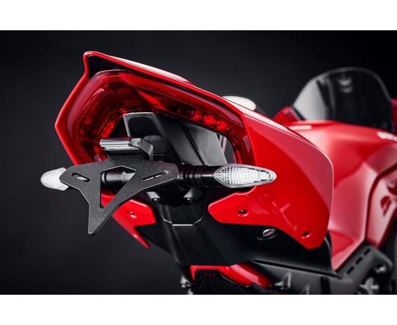 Evotech Performance have designed and manufactured a tail tidy for your Panigale V2. No modifications to your bike are required. Secured in place using existing mounting points. CNC machined from lightweight billet aircraft grade aluminium. Our tail tidy retains the OEM indicators. We have supplied a new LED numberplate light. No modifications to the wiring is required, simply plug and play. All wires are fully hidden for a cleaner finish. Powder coated black for longevity. All required fixings are supplied in the kit. Easy to follow pictorial instructions are available for download. We are proud of our products and are so confident in our quality and value that we operate a 'no-quibble' returns policy if you are not completely satisfied. Registered Community Design No. EU Reg. Design: 008262380-00024UK Reg. Design: 9008262380-00024