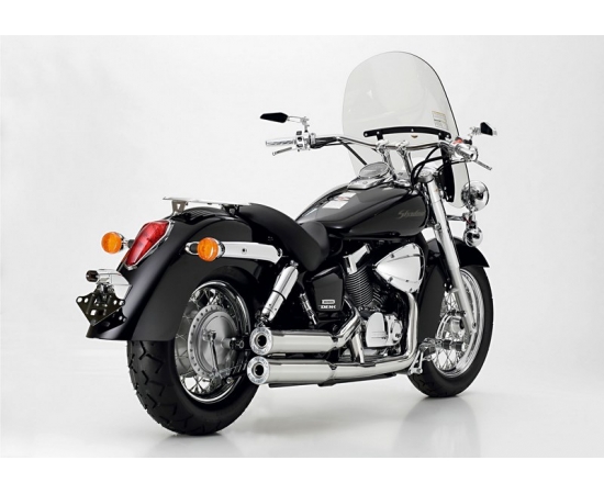 Mit der FALCON Double Groove verpassen Sie Ihrem Bike den ultimativen Chopperstyle: Die extra breiten 60 mm Krümmer aus hochglanzpoliertem Edelstahl mit Groove Style Endkappen lassen dumpf tiefen Choppersound ab. Modernste Doublewall-Technologie schützt die Krümmer vor Verfärbung durch Hitzeentwicklung. Mit EG-BE.