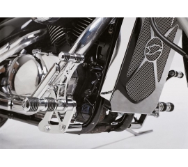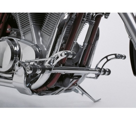 Falcon bietet Auspuffanlagen im ultimativen Chopper-Look: Extra breite, hochglanzpolierte oder mattschwarze Edelstahl-Krümmer mit Endkappen im Groove-Stil sorgen für einen dumpfen und tiefen Choppersound. Neueste Doublewall-Technologie schützt die Schalldämpfer vor Verfärbungen.