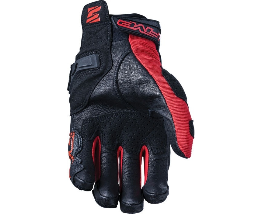 A brand-new style, the SF3 is a short, urban sport glove that’s all about extreme suppleness, effective ventilation, and top-level protection…all with a bold FIVE identity. On the topside: leather construction and ventilated PU Racing protective shells on the metacarpals. Ventilated leather on the index and middle fingers. Ventilated synthetic leather reinforcement on the thumb. The inside of the palm is in full-grain leather with synthetic leather reinforcements and a TPR shell. Several textile elements (3D Airmesh, 4-way Spandex™ on the thumb, ring finger, and little finger, Lycra fourchettes, Airprene cuff) make it exceptionally comfortable. The wide FIVE logo in soft TPR combines a sporty look with protection. This style is now an absolute must-have.