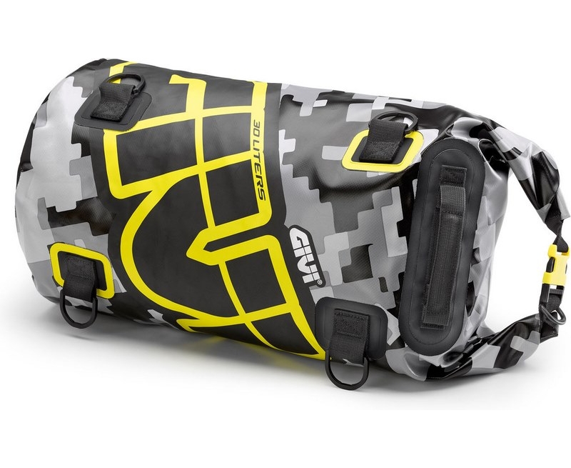 Givi Waterproof Saddle / Rear Rack Bag Easy-T EA114CM, 30 liters, HxLxW 27x50x27cm, color Camouflage Grey / Yellow | EA114CM
