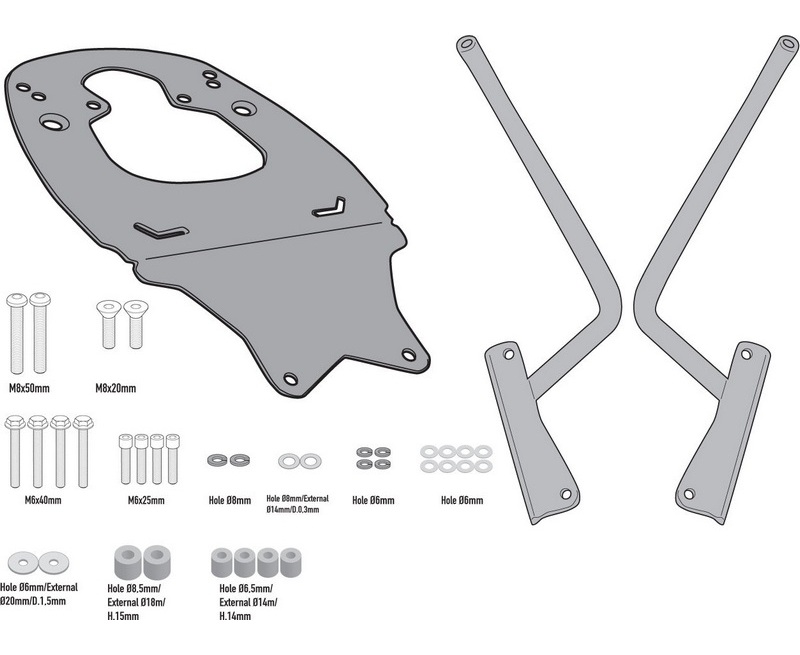 With this part you can mount a Givi Top Case, please note it should be combined with the Givi MONOKEY® plates, or with the Givi MONOLOCK® plates (not included).