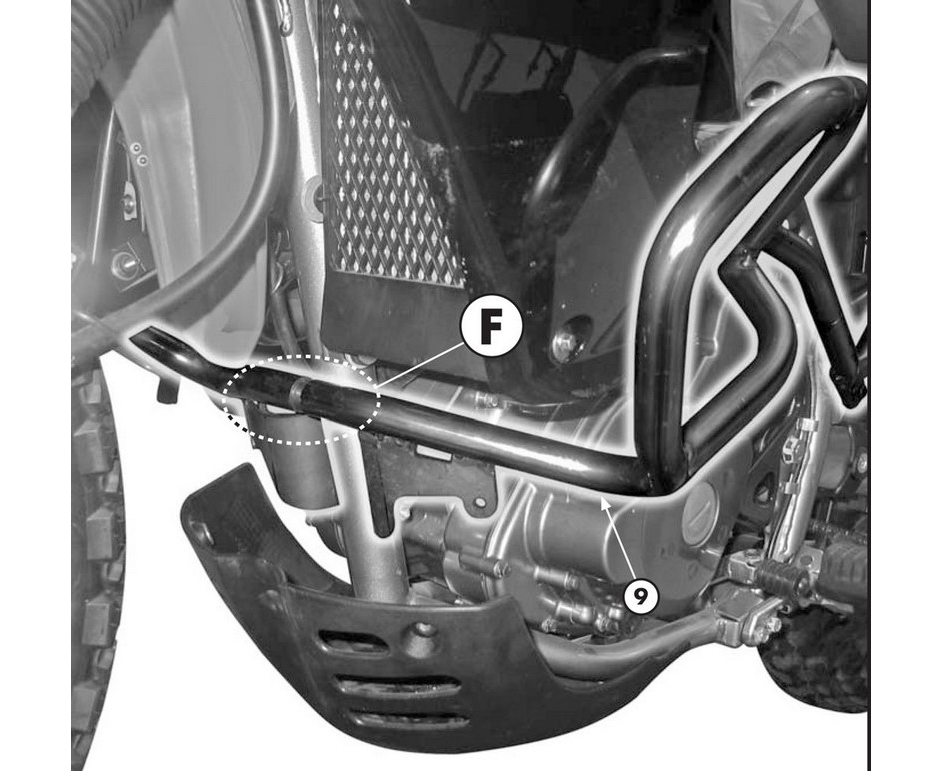 Specific engine guard / tube diameter 25 mm / We recommend that the installation is carried out by a qualified mechanic p>