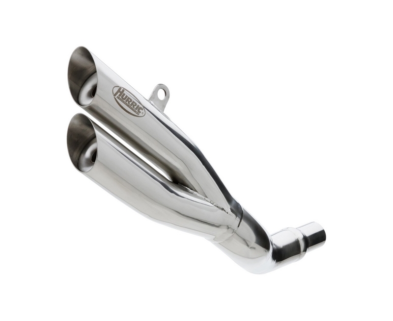 Der HURRIC Pro 2 - das Doppelrohr der nächsten Generation. Dieser extravagante polierte Edelstahldämpfer läuft als Doppelrohr aus und endet aggressiv angeschnitten mit weitem Auslass. Genug Austrittsfläche für kernig sportlichen Sound. Befestigt wird der Endtopf mit einem angeschweißten Halter. Mit EG-BE.