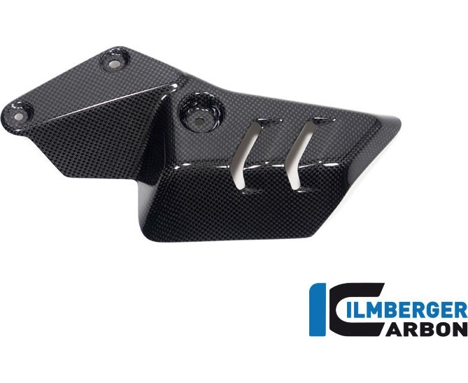 The left cover on the exhaust elegantly covers the catalytic converter on the left side of the Ducati Diavel V4. Assembly is quick and easy. The final clear coat comes in the timeless glossy version and underlines the sporty appearance of the motorcycle!For our carbon we only use prepreg fabric specially produced for this purpose, which is also used in a similar form in Formula 1 and space travel. The material, which is elaborately hand-laminated and cured in several stages in the autoclave, not only impresses with its unique appearance but also with its unique technical properties. With the same volume, it has a specific stiffness three times as high as steel and at the same time, due to its particularly low density, only a fraction of its weight.In order to optimally protect this high-quality material from all kinds of environmental influences, we are the only carbon manufacturer worldwide to use aspecially developed plastic coating on all surfaces. In combination with our clear varnish. This ensures a previously unattainable and unique depth effect, which allows the high quality of the material to come into its own.So that not only driving but also screwing is a pleasure, we only use the original fastening points for this part.The facts- street legal with germanABE- Sealing of all surfaces (inside and outside) through a unique plastic coating to protect against environmental influences of any kind and optimal primer for the additional clear coat- additional clear varnish on all visible surfaces for a uniquely smooth surface - Thanks to multi-layer protection against UV light, no aging processes in the material- Delivered ready to install- TÜV certified quality- Made from prepreg material specially produced for Ilmberger- Manufactured in-house according to ISO 9001- Attachment using the original attachment points
