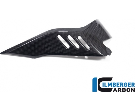 The cover below the tank replaces the original part in just a few steps. The appearance of the Ducati Diavel V4 becomes even more aggressive and the high-quality material once again clearly underlines the power of the muscle bike!The final clear coat comes in the timeless glossy version and underlines the sporty appearance of the motorcycle!For our carbon we only use prepreg fabric specially produced for this purpose, which is also used in a similar form in Formula 1 and space travel. The material, which is elaborately hand-laminated and cured in several stages in the autoclave, not only impresses with its unique appearance but also with its unique technical properties. With the same volume, it has a specific stiffness three times as high as steel and at the same time, due to its particularly low density, only a fraction of its weight.In order to optimally protect this high-quality material from all kinds of environmental influences, we are the only carbon manufacturer worldwide to use aspecially developed plastic coating on all surfaces. In combination with our clear varnish. This ensures a previously unattainable and unique depth effect, which allows the high quality of the material to come into its own.So that not only driving but also screwing is a pleasure, we only use the original fastening points for this part.The facts- street legal with germanABE- Sealing of all surfaces (inside and outside) through a unique plastic coating to protect against environmental influences of any kind and optimal primer for the additional clear coat- additional clear varnish on all visible surfaces for a uniquely smooth surface - Thanks to multi-layer protection against UV light, no aging processes in the material- Delivered ready to install- TÜV certified quality- Made from prepreg material specially produced for Ilmberger- Manufactured in-house according to ISO 9001- Attachment using the original attachment points