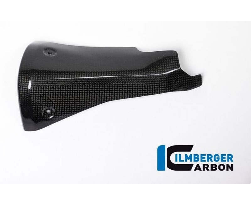 The front exhaust cover in carbon is made from a special high-temperature prepreg carbon material using a special autoclave method to keep discolouration of the carbon fibre at a minimum under extreme heat. This part is a direct replacement for the original component and contributes mainly to weight saving on the motorcycle (up to 70% less) and a higher stiffness of the parts. Like all of our carbon fibre parts, it was made according to the latest protocols and industry standards and can be considered to encompass all aspects of current 'best of industry' practice. The part is made completely out of pre-preg carbon fibre materials using an autoclave. As with all our carbon parts, we use a clear plastic coating that not only improves the appearance, but also protects the carbon fibre from scratching and has a unique UV resistance.