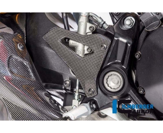 The heel guard in Carbon comes with a gloss finish and this part is a direct replacement for the original component and contributes mainly to weight saving on the motorcycle (up to 70% less) and a higher stiffness of the parts. Like all of our carbon fibre parts, it was made according to the latest protocols and industry standards and can be considered to encompass all aspects of current 'best of industry' practice. The part is made completely out of pre-preg carbon fibre materials using an autoclave. As with all our carbon parts, we use a clear plastic coating that not only improves the appearance, but also protects the carbon fibre from scratching and has a unique UV resistance.