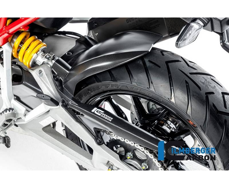 Bolted to the original attachment points, the rear fender made of carbon has proven itself in all situations. It protects the rider and motorcycle much better from the dirt coming from the rear wheel. The exposed chain guard was also lengthened in its construction compared to the original part. This means that unwanted stains - by a well-lubricated chain - on bike and rider are a thing of the past.