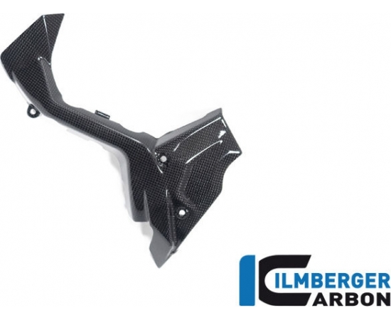 The sprocket cover hides the sprocket and integrates seamlessly into the surrounding curves and edges of the engine.The final clear coat comes in the timeless glossy version and underlines the sporty appearance of the motorcycle!For our carbon we only use prepreg fabric specially produced for this purpose, which is also used in a similar form in Formula 1 and space travel. The material, which is elaborately hand-laminated and cured in several stages in the autoclave, not only impresses with its unique appearance but also with its unique technical properties. With the same volume, it has a specific stiffness three times as high as steel and at the same time, due to its particularly low density, only a fraction of its weight.In order to optimally protect this high-quality material from all kinds of environmental influences, we are the only carbon manufacturer worldwide to use aspecially developed plastic coating on all surfaces. In combination with our clear varnish. This ensures a previously unattainable and unique depth effect, which allows the high quality of the material to come into its own.So that not only driving but also screwing is a pleasure, we only use the original fastening points for this part.The facts- street legal with germanABE- Sealing of all surfaces (inside and outside) through a unique plastic coating to protect against environmental influences of any kind and optimal primer for the additional clear coat- additional clear varnish on all visible surfaces for a uniquely smooth surface - Thanks to multi-layer protection against UV light, no aging processes in the material- Delivered ready to install- TÜV certified quality- Made from prepreg material specially produced for Ilmberger- Manufactured in-house according to ISO 9001- Attachment using the original attachment points