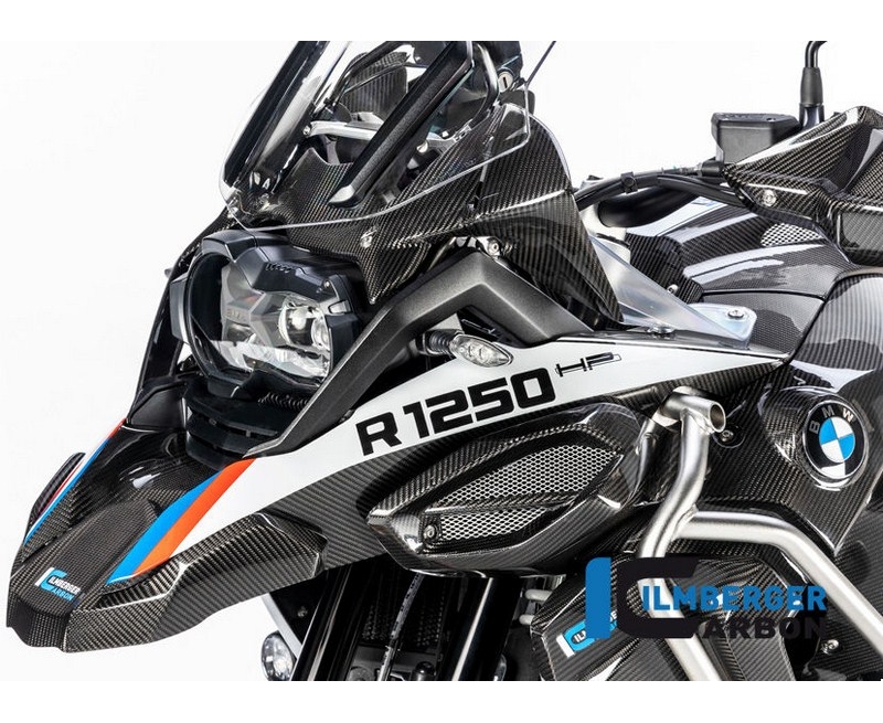 The front beak / upper mudgard for the left side is a direct replacement for the original component of the BMW R 1250 GS Adventure from 2019 and contributes mainly to weight saving on the motorcycle (up to 70% less) and a higher stiffness of the parts.