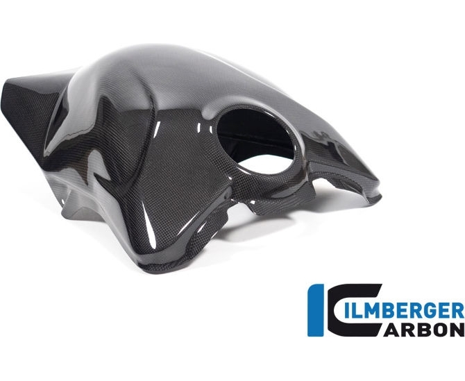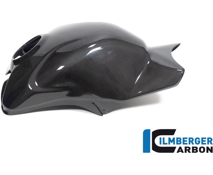 The tank cover encloses the tank and protects it from all sides.In order to obtain a harmonious overall picture, the fiber layers are inserted and aligned in the mold by experts. The carbon part fits perfectly into the surrounding shapes of the motorcycle. The more of our parts are installed and combined, the more overwhelming the result.For our carbon we only use prepreg fabric specially produced for this purpose, which is also used in a similar form in Formula 1 and space travel. The material, which is elaborately hand-laminated and cured in several stages in the autoclave, not only impresses with its unique appearance but also with its unique technical properties. With the same volume, it has a specific stiffness three times as high as steel and at the same time, due to its particularly low density, only a fraction of its weight.In order to optimally protect this high-quality material from all kinds of environmental influences, we are the only carbon manufacturer worldwide to use a specially developed plastic coating on all surfaces. In combination with our clear varnish. This ensures a previously unattainable and unique depth effect, which allows the high quality of the material to come into its own.So that not only driving but also screwing is a pleasure, we only use the original fastening points for this part.The facts:- Sealing of all surfaces (inside and outside) with a unique coating to protect against environmental influences of all kinds- Additional high-gloss clear lacquer coating on all visible surfaces - optimally protected against UV light- Delivery ready for installation- made of prepreg material specially produced for Ilmberger- Manufactured in-house according to ISO 9001- Attachment using the original attachment points- quick and easy assembly