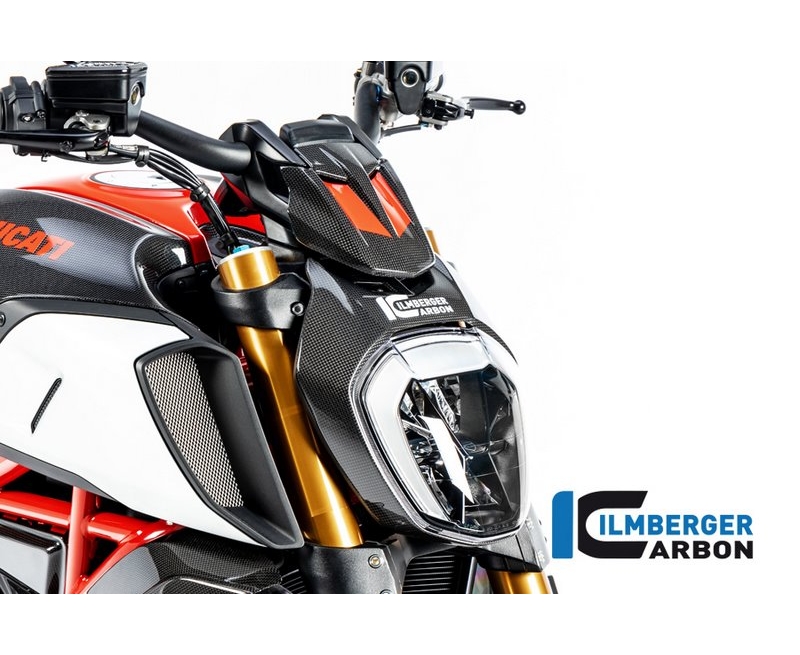 Die Instrumentenabdeckung aus Carbon und glänzender Ausführung für die Ducati Diavel 1260 ab 2019 wird an vorhandenen Haltepunkten am Fahrzeug aufgeschraubt.