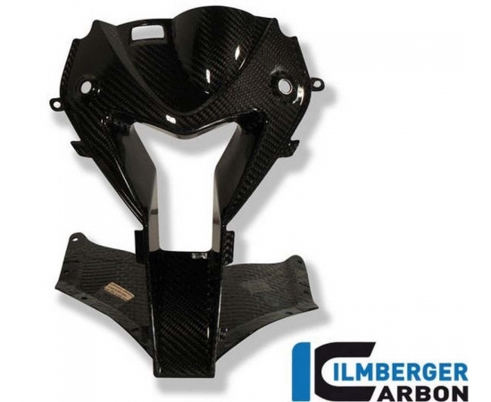 The front fairing center piece in carbon is a direct replacement for the original component and contributes mainly to weight saving on the motorcycle (up to 70% less) and a higher stiffness of the parts. Like all of our carbon fibre parts, it was made according to the latest protocols and industry standards and can be considered to encompass all aspects of current 'best of industry' practice. The part is made completely out of pre-preg carbon fibre materials using an autoclave. As with all our carbon parts, we use a clear plastic coating that not only improves the appearance, but also protects the carbon fibre from scratching and has a unique UV resistance.