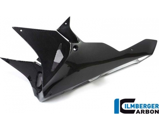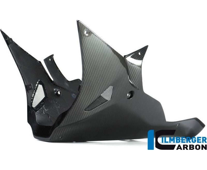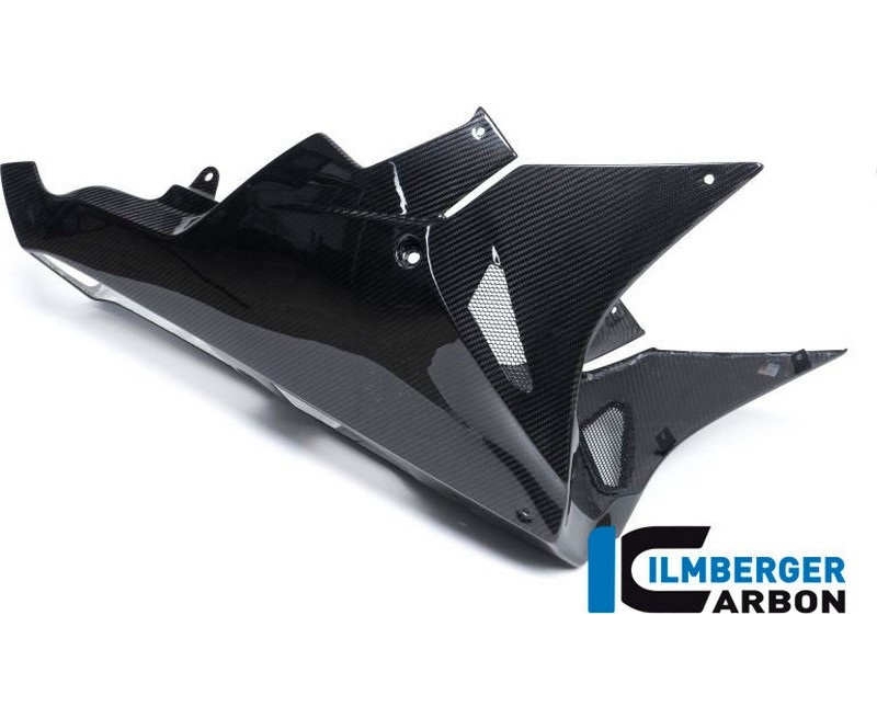 The 1-piece street carbon engine spoiler for the BMW S 1000 RR (2017 ) is made from special high-temperature prepreg carbon material and was designed for use with the original exhaust system, as well as with full racing exhaust systems. Our bellypan is longer than the original part and it covers the pre-exhaust. Please note that you need our fairing holder kit