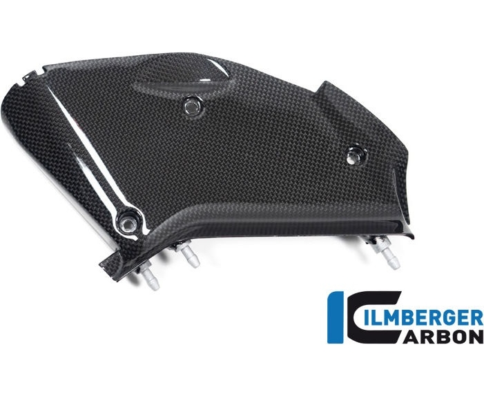 The inner windchannel covers offer the perfect counterpart to the air inlets and complete the overall picture perfectly, including on the inside. They are the ideal companion for every perfectionist who wants to get the best out of his bike.The final clear coat comes in the timeless glossy version and underlines the sporty appearance of the motorcycle!For our carbon we only use prepreg fabric specially produced for this purpose, which is also used in a similar form in Formula 1 and space travel. The material, which is elaborately hand-laminated and cured in several stages in the autoclave, not only impresses with its unique appearance but also with its unique technical properties. With the same volume, it has a specific stiffness three times as high as steel and at the same time, due to its particularly low density, only a fraction of its weight.In order to optimally protect this high-quality material from all kinds of environmental influences, we are the only carbon manufacturer worldwide to use aspecially developed plastic coating on all surfaces. In combination with our clear varnish. This ensures a previously unattainable and unique depth effect, which allows the high quality of the material to come into its own.So that not only driving but also screwing is a pleasure, we only use the original fastening points for this part.The facts- street legal with germanABE- Sealing of all surfaces (inside and outside) through a unique plastic coating to protect against environmental influences of any kind and optimal primer for the additional clear coat- additional clear varnish on all visible surfaces for a uniquely smooth surface - Thanks to multi-layer protection against UV light, no aging processes in the material- Delivered ready to install- TÜV certified quality- Made from prepreg material specially produced for Ilmberger- Manufactured in-house according to ISO 9001- Attachment using the original attachment points