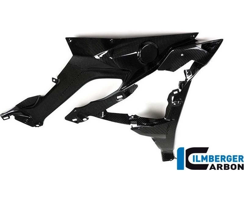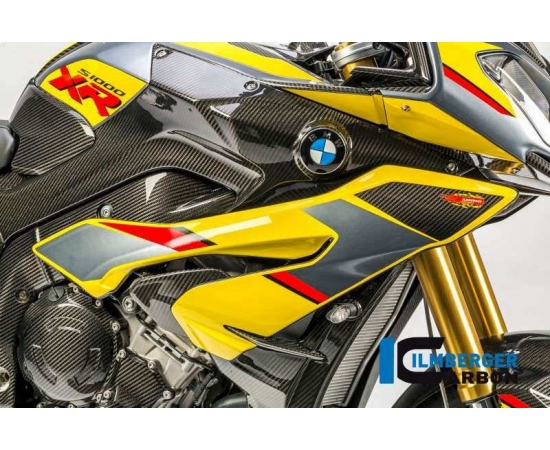 The watercooler cover in Carbon for the BMW S 1000 XR replaces the original black plastic component including batch holder, tanksidepanel, and watercoolercover.. The painted side fairing stays on the bike.