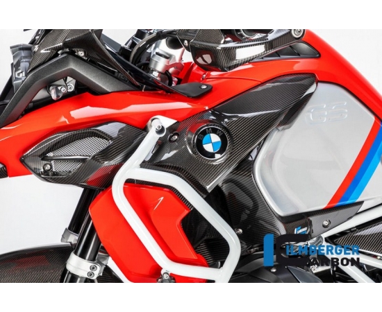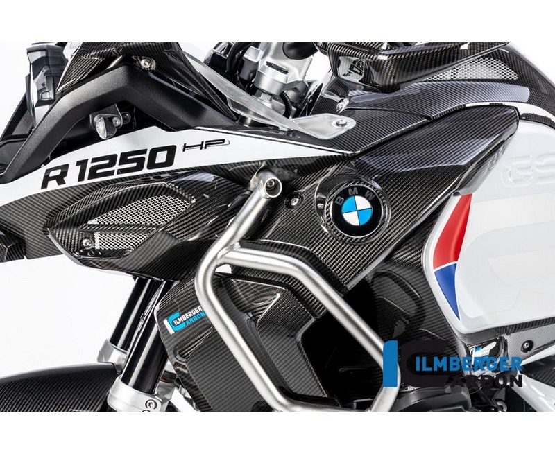 The Airtube left side in Carbon for the BMW R 1250 GS Adventure from MY 2019 is a direct replacement for the original component and contributes mainly to weight saving on the motorcycle (up to 70% less) and a higher stiffness of the parts.