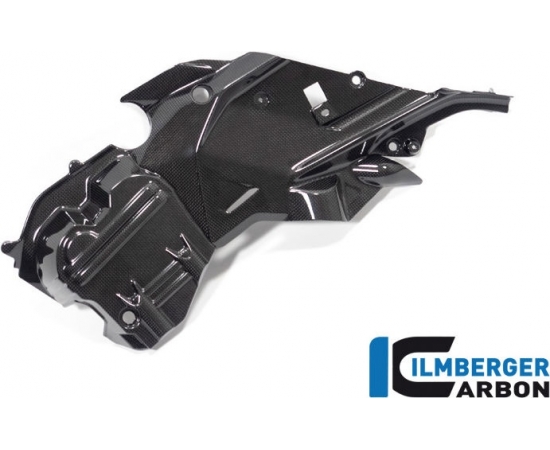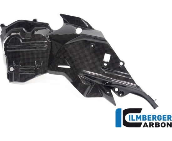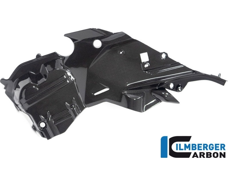 The cylinder head cover for the Ducati Diavel V4 replaces the original plastic parts with a high-quality carbon part. The one-piece design means there are no annoying edges or transitions and the use of the high-performance material directly on the engine clearly underlines the brutal power of the V4.The final clear coat comes in the timeless glossy version and underlines the sporty appearance of the motorcycle!For our carbon we only use prepreg fabric specially produced for this purpose, which is also used in a similar form in Formula 1 and space travel. The material, which is elaborately hand-laminated and cured in several stages in the autoclave, not only impresses with its unique appearance but also with its unique technical properties. With the same volume, it has a specific stiffness three times as high as steel and at the same time, due to its particularly low density, only a fraction of its weight.In order to optimally protect this high-quality material from all kinds of environmental influences, we are the only carbon manufacturer worldwide to use aspecially developed plastic coating on all surfaces. In combination with our clear varnish. This ensures a previously unattainable and unique depth effect, which allows the high quality of the material to come into its own.So that not only driving but also screwing is a pleasure, we only use the original fastening points for this part.The facts- street legal with germanABE- Sealing of all surfaces (inside and outside) through a unique plastic coating to protect against environmental influences of any kind and optimal primer for the additional clear coat- additional clear varnish on all visible surfaces for a uniquely smooth surface - Thanks to multi-layer protection against UV light, no aging processes in the material- Delivered ready to install- TÜV certified quality- Made from prepreg material specially produced for Ilmberger- Manufactured in-house according to ISO 9001- Attachment using the original attachment points