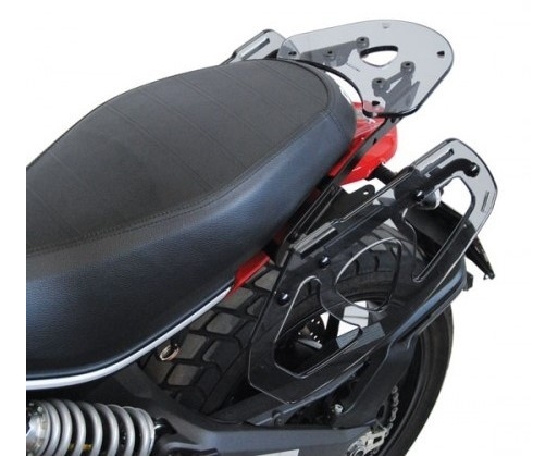 Side bag holder made of PMMA 10mm thick with rounded and polished edge fixed on brackets with double anti-corrosive treatment of zinc plating and painting, necessary to keep the soft bags from Motorcycle away from the rear wheel and steady during the trip.