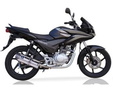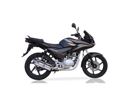 Silencer manufactured from AISI304 stainless steel with a satin polished finish.Asymmetric and conical end cap, manufactured in aluminum with high temperature black lacquer.
