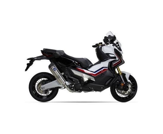 Silencer manufactured from AISI304 stainless steel with a satin polished finish.Asymmetric and conical end cap, manufactured in aluminum with high temperature black lacquer.