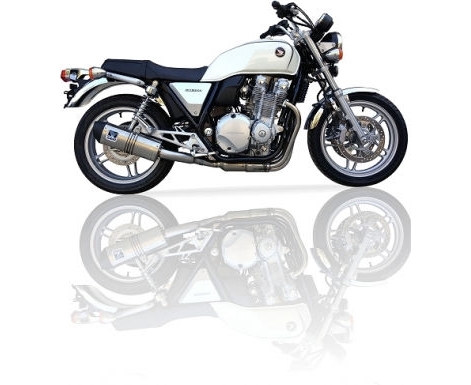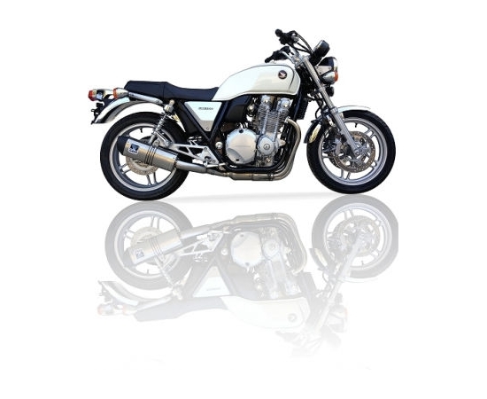 Silencer manufactured from AISI304 stainless steel with a satin polished finish.Asymmetric and conical end cap, manufactured in aluminum with high temperature black lacquer.