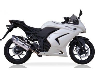 Silencer manufactured from AISI304 stainless steel with a satin polished finish.Asymmetric and conical end cap, manufactured in aluminum with high temperature black lacquer.