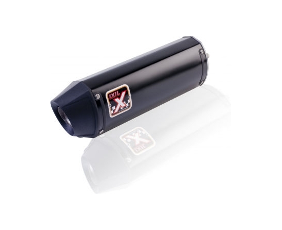 Silencer manufactured from AISI304 stainless steel with black lacquer finish.Asymmetric and conical end cap, manufactured in aluminum with high temperature black lacquer.