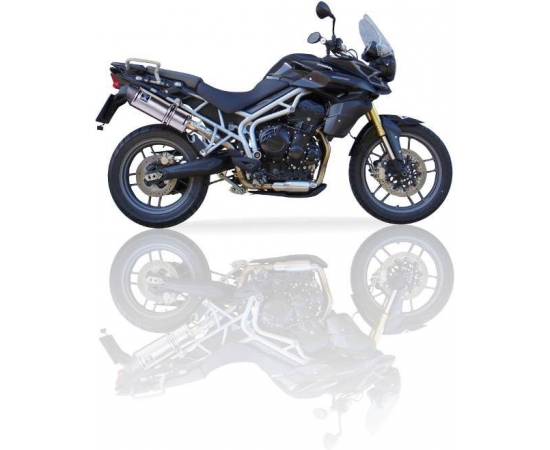 Silencer manufactured from AISI304 stainless steel with a satin polished finish.Asymmetric and conical end cap, manufactured in aluminum with high temperature black lacquer.