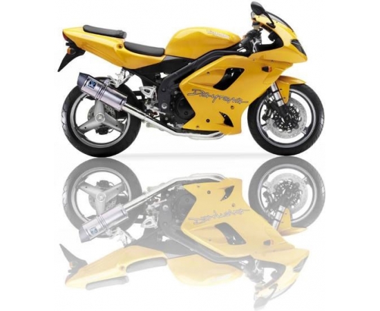 Silencer manufactured from AISI304 stainless steel with a satin polished finish.Asymmetric and conical end cap, manufactured in aluminum with high temperature black lacquer.