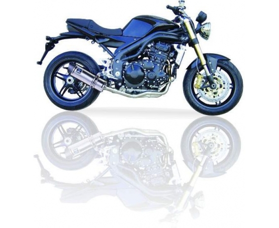 Silencer manufactured from AISI304 stainless steel with a satin polished finish.Asymmetric and conical end cap, manufactured in aluminum with high temperature black lacquer.