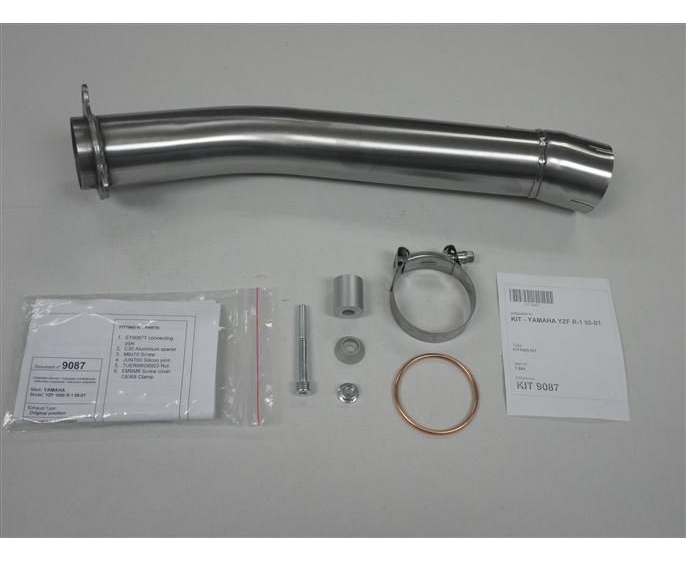 Silencer manufactured from AISI304 stainless steel with a satin polished finish.Asymmetric and conical end cap, manufactured in aluminum with high temperature black lacquer.
