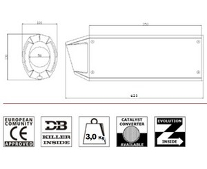 Silencer manufactured from AISI304 stainless steel with a satin polished finish.Asymmetric and conical end cap, manufactured in aluminum with high temperature black lacquer.