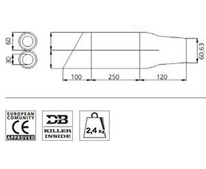 Silencer manufactured from AISI 304 stainless steel with black lacquer finish.End caps made in aluminum with matt anodizing finish.