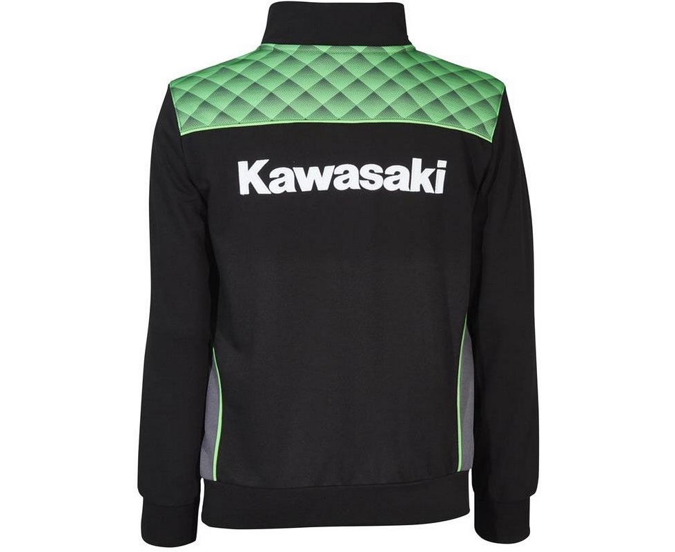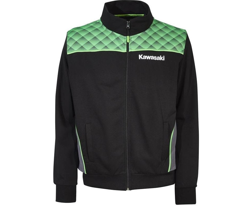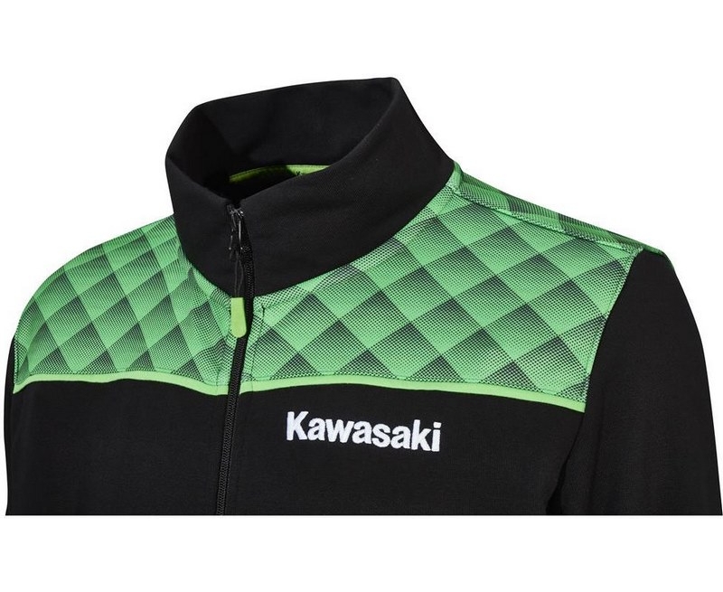 Höchste Zeit für ein neues Sweatshirt. Mit weissem Kawasaki Logo auf schwarzem Untergrund, dazu grüne Akzente. Gebrandeter Reissverschluss. Eine Mischung aus Baumwolle und Polyester.