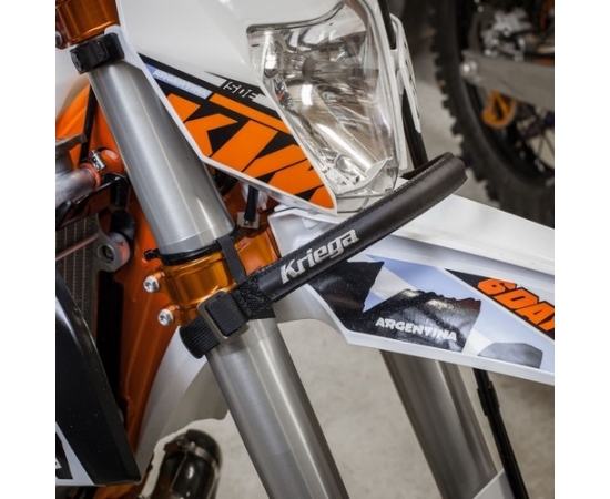 Front fender straps are essential equipment for extreme enduro events. Kriega's unique design is a self supporting/semi-rigid solution, which is always easy to find and use.