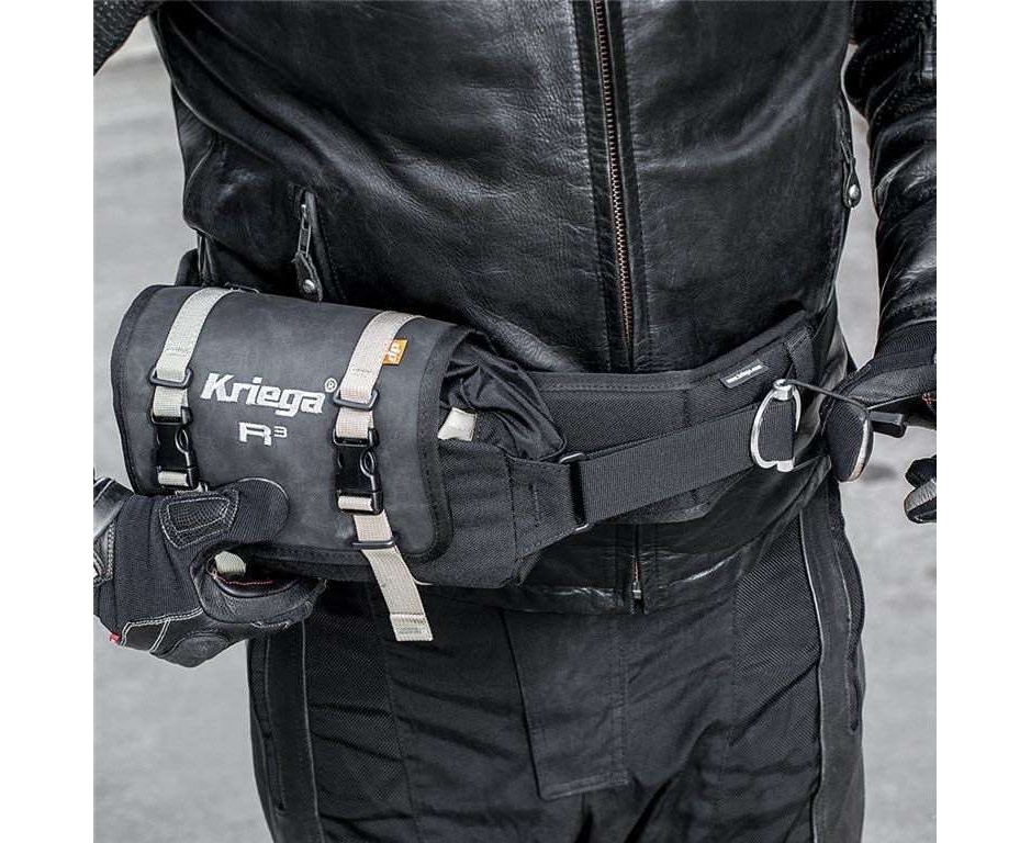 R3 WAIST PACK 100% waterproof protection for essentials on the go. The R3 is the most practical waist-pack for all journeys, adjusting quickly and easily to gain access to your money, camera, sunglasses etc. Kriega's signature alloy belt adjuster sets the waist tension in seconds and eradicates loose strap ends giving an uncluttered design. Once the belt tension has been released the pack can be easily be moved around to gain access to items, without the need to take off and on each time.