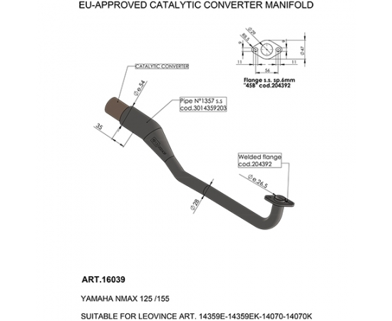 The LeoVince EU-Approved manifold is equipped with an approved catalytic converter. Where specified, the EU-Approved manifold is compatible with the "db (A) compliant" and "US" versions available for the same motorcycle model.