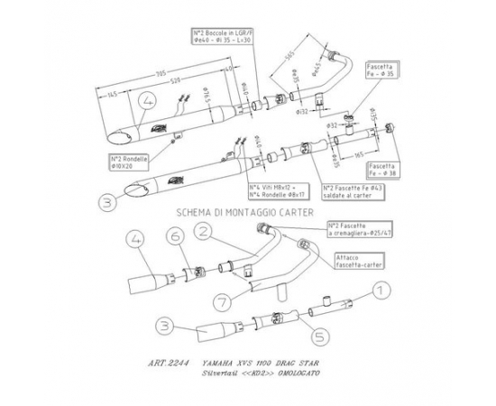 Leovince K02 SLIP-ON, CHROMED STEEL E-Approved for YAMAHA XVS 1100 DRAG STAR (1999-2003) | 2244