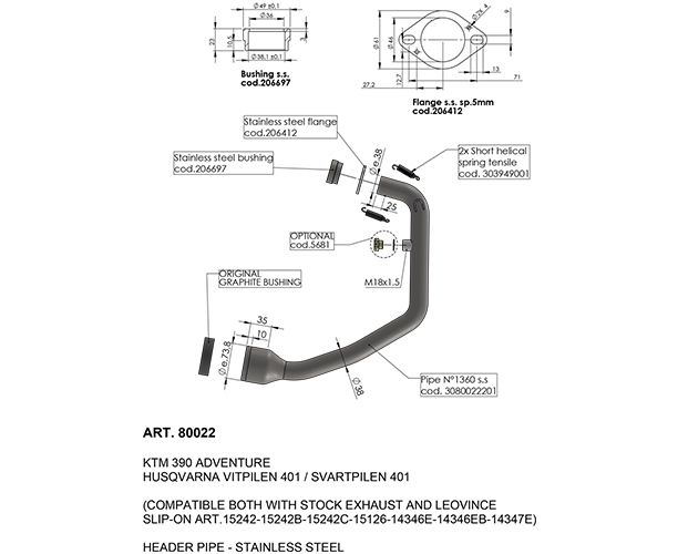 The LeoVince header pipes and cat eliminator link pipes are designed by our technicians employing the acquired experience in world competitions. Made of AISI 304 TIG welded stainless steel, they are developed on the dyno using specific dimensions for each model with the aim of improving torque and maximum power, ensuring in most cases to also have a saving in terms of weight. The result is a product that, for materials, finishes and performance characteristics, is at the highest quality levels found on the market.