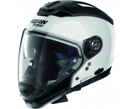 This is Nolan’s new top-of-the range road crossover which maintains and enriches the much-appreciated characteristics of its predecessor, the N44. It is characterized by an unmistakable design, its many technical features and the ample range of colours and graphics available. Its compact size (thanks to the availability of two outer shell sizes), double P/J homologation, ultrawide visor, VPS sunscreen (adjustable to various positions and fitted with the automatic repositioning system), AirBooster Technology upper ventilation system, double lever Microlock2 retention system with micrometric regulation, innovative Clima Comfort inner padding (with micro-perforated fabric and adjustable neck-roll) and set up for the N-Com communication system make the N70-2 GT the definitive road crossover for the most demanding of motorbike tourists.