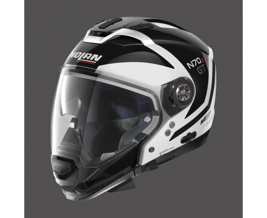 General Information: This is Nolan’s new top-of-the range road crossover which maintains and enriches the much-appreciated characteristics of its predecessor, the N44. It is characterized by an unmistakable design, its many technical features and the ample range of colours and graphics available. Its compact size (thanks to the availability of two outer shell sizes), double P/J homologation, ultrawide visor, VPS sunscreen (adjustable to various positions and fitted with the automatic repositioning system), AirBooster Technology upper ventilation system, double lever Microlock2 retention system with micrometric regulation, innovative Clima Comfort inner padding (with micro-perforated fabric and adjustable neck-roll) and set up for the N-Com communication system make the N70-2 GT the definitive road crossover for the most demanding of motorbike tourists.