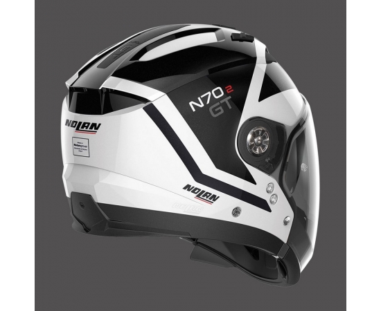 General Information: This is Nolan’s new top-of-the range road crossover which maintains and enriches the much-appreciated characteristics of its predecessor, the N44. It is characterized by an unmistakable design, its many technical features and the ample range of colours and graphics available. Its compact size (thanks to the availability of two outer shell sizes), double P/J homologation, ultrawide visor, VPS sunscreen (adjustable to various positions and fitted with the automatic repositioning system), AirBooster Technology upper ventilation system, double lever Microlock2 retention system with micrometric regulation, innovative Clima Comfort inner padding (with micro-perforated fabric and adjustable neck-roll) and set up for the N-Com communication system make the N70-2 GT the definitive road crossover for the most demanding of motorbike tourists.