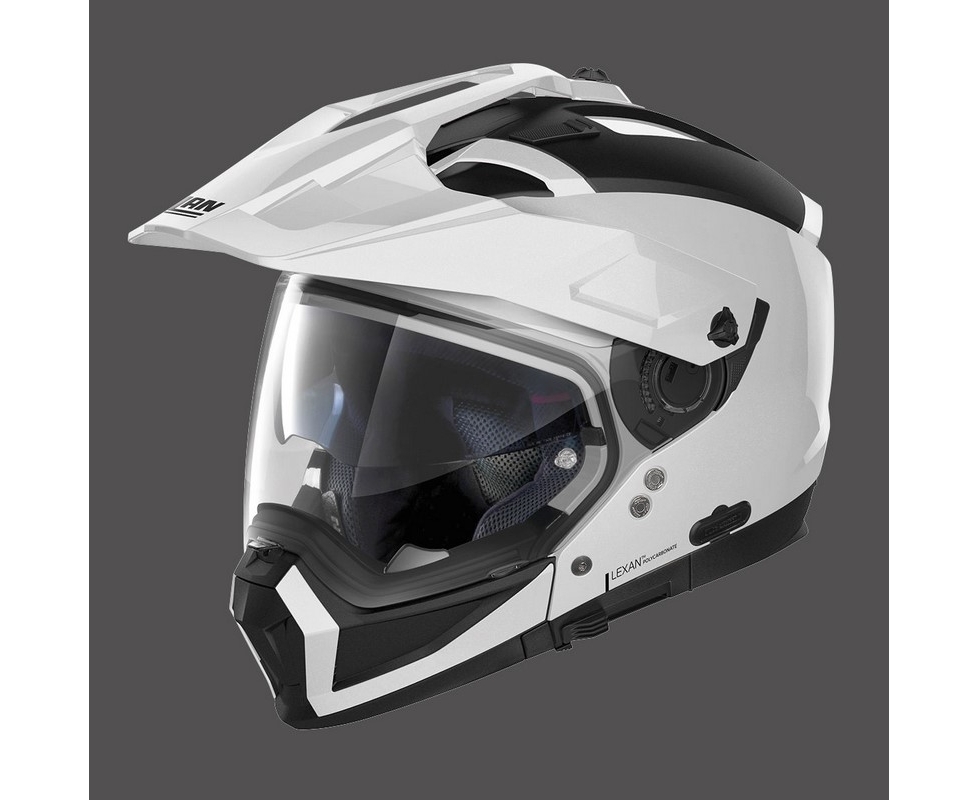 General Information: This is Nolan’s new top-of-the range road and off road crossover, the first on/off road helmet fitted with a removable protective chin guard on the market. It is characterized by an off road-inspired design, its many technical features and the ample range of colours and graphics available. Its compact size (thanks to the availability of two outer shell sizes), double P/J homologation, ultrawide visor, a particularly wide window compatible with mask use (even with the visor fitted and open), VPS sunscreen (adjustable to various positions and fitted with the automatic repositioning system), AirBooster Technology upper ventilation system, double lever Microlock2 retention system with micrometric regulation, innovative Clima Comfort inner padding (with micro-perforated fabric and adjustable neck-roll) and set up for the N-Com communication system make the N70-2 X the definitive on