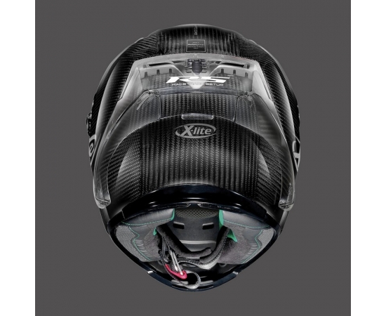 General Information: This is the new version of the racing full face high-carbon-content helmet by X-lite, here enhanced by an exclusive Racetrack Setup (RS). Additional metal silver visor, replacing the dark green visor. The Racetrack Aerodynamic Spoiler (RAS), and an exclusive adjustment system for the position of the Liner (LPC