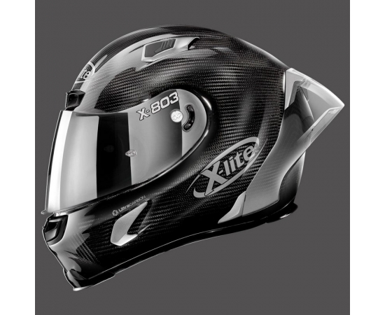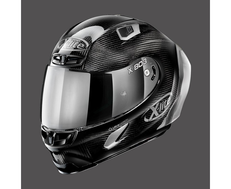 -Nolan Emergency Release System), reliable visor mechanism with a Double Action system, efficient RAF (Racing Air Flow) ventilation system and Carbon Fitting Racing Experience inner comfort padding (with an innovative net Construction). The X-803 RS ULTRA CARBON is presented as the most exclusive racing full face helmet for motorcyclists who want to enjoy their experience on the racetrack to the full.
