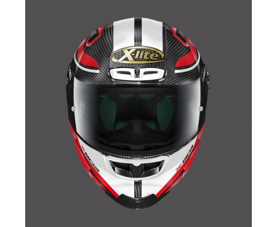 -Nolan Emergency Release System), reliable visor mechanism with a Double Action system, efficient RAF (Racing Air Flow) ventilation system and Carbon Fitting Racing Experience inner comfort padding (with an innovative net Construction). The X-803 RS ULTRA CARBON is presented as the most exclusive racing full face helmet for motorcyclists who want to enjoy their experience on the racetrack to the full.