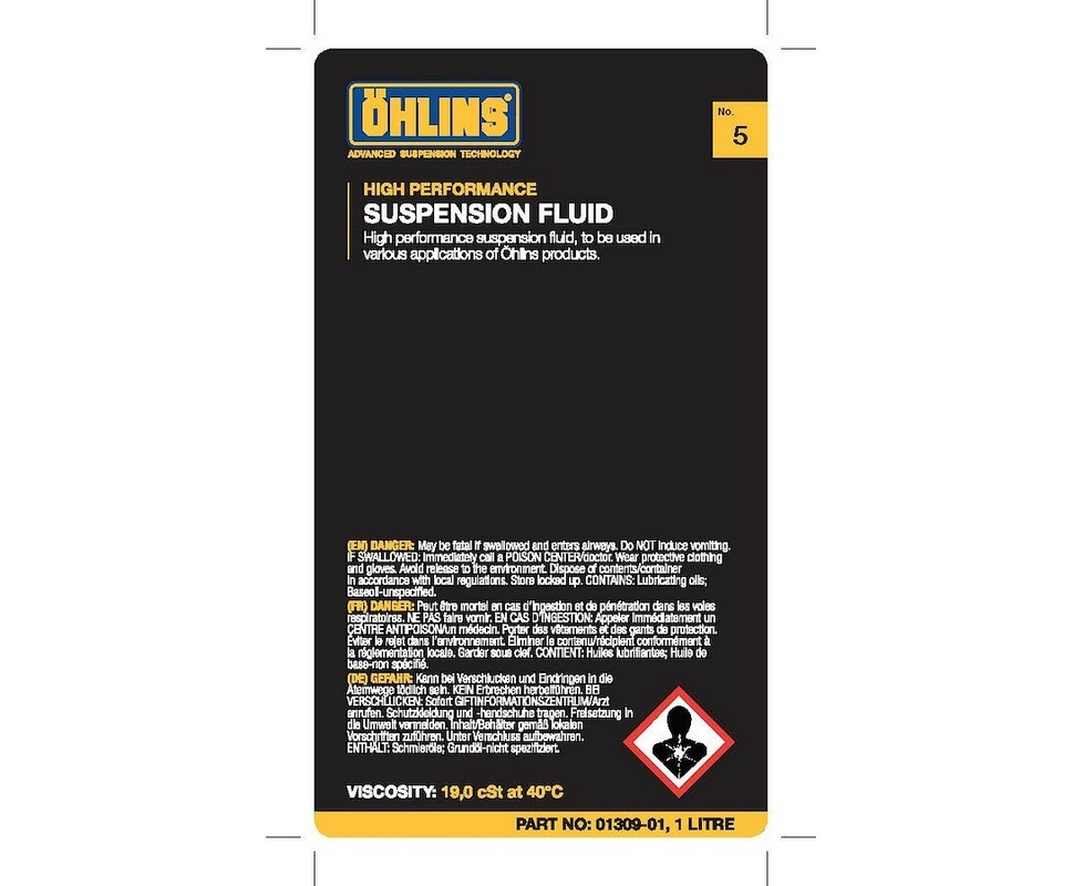 Das Gabelöl von Öhlins zeichnet sich gegenüber herkömmlichen Ölen durch eine verringerte Reibung, einen geringen Verschmutzungsgrad, eine lange Lebensdauer sowie eine hohe Beständigkeit gegen Ölverschäumung (die so genannte Kavitation) aus. Zusammen mit den Gabelfedern von Öhlins lassen sich das Ansprechverhalten und die Performance einer originalen Gabel deutlich verbessern.