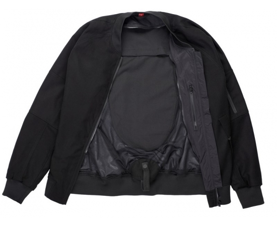 Main fabric:69% Cotton 29.5% Nylon 1.5% Elastane Lining: 100% Polyester Filling: 100% Recycled PolyesterMilitary-inspired unisex waterproof motorcycle bomber jacket